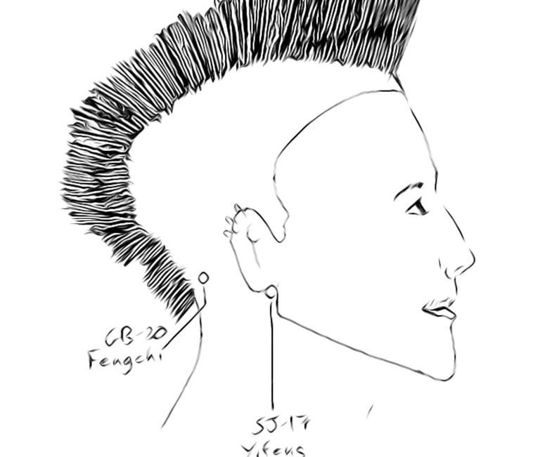 or pressure in the ear, usually a point like SJ-17, and sometimes one of those SI or SJ points around the ear.